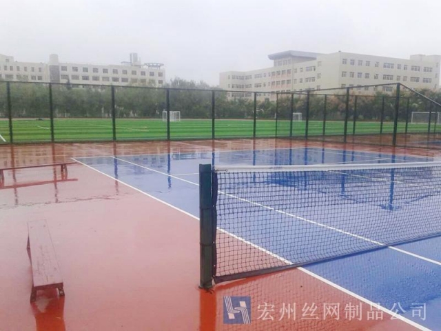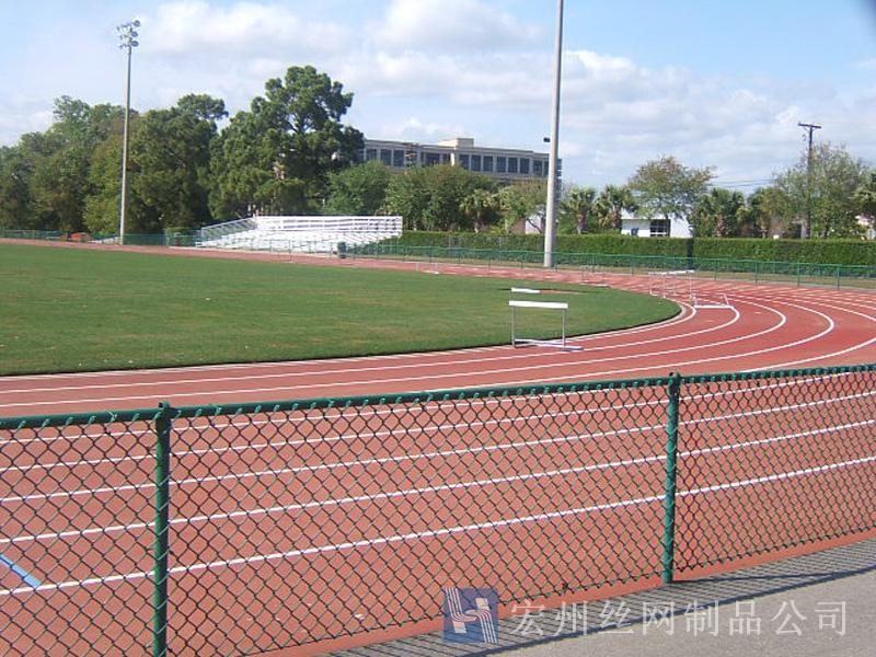 【田徑場圍網(wǎng)】是選用優(yōu)質(zhì)低碳鋼絲編織焊接而成。采用防盜螺栓卡接、扁鐵固定、組裝掛鉤方式連接。經(jīng)過電鍍、熱鍍、噴塑、浸塑處理,具有防腐、防老化、抗曬、耐候、色彩鮮亮、網(wǎng)面平整,強(qiáng)力張緊,不易受外力撞擊變形、現(xiàn)場施工安裝、靈活性強(qiáng)(可根據(jù)現(xiàn)場要求隨時(shí)調(diào)整造型和尺寸)等優(yōu)勢。