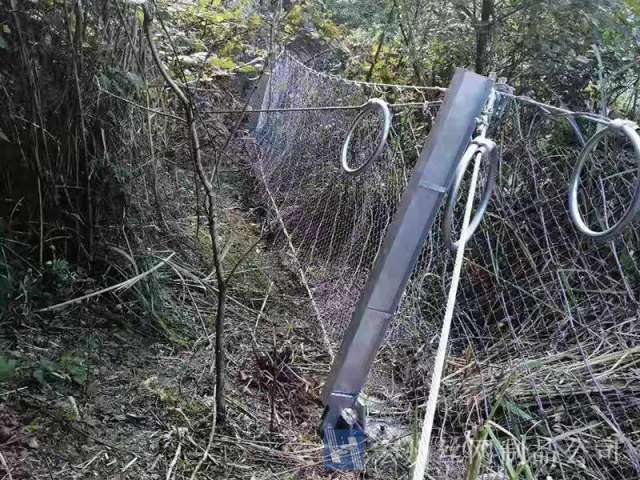 材質(zhì):鋼絲繩網(wǎng)、支撐繩和減壓環(huán)構(gòu)造:由鋼絲繩網(wǎng)或環(huán)形網(wǎng)(需攔截小塊落石時附加一層鐵絲格柵)、固定系統(tǒng)(錨桿、攔錨繩、基座和支撐繩)、減壓環(huán)和鋼柱四個主要部分構(gòu)成。